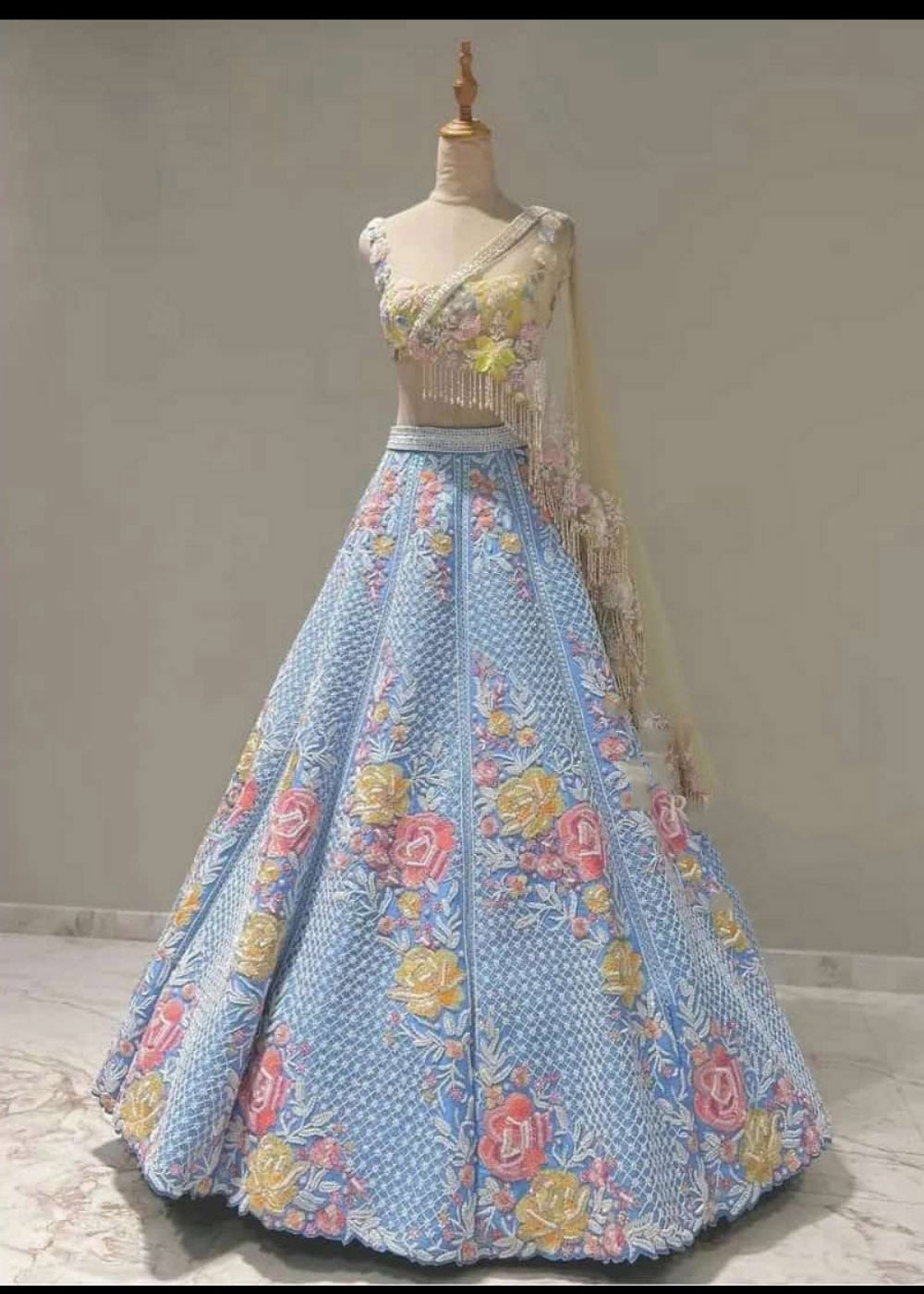 Discover the beauty of resham work, intricate embroidery details, and a matching net dupatta in our angelic lavender silk bridal wear lehenga choli.Perfect for any special occasion or celebration, this stunning ensemble from nusrat exports showcases impeccable craftsmanship and elegant design.Explore our exclusive range now!"